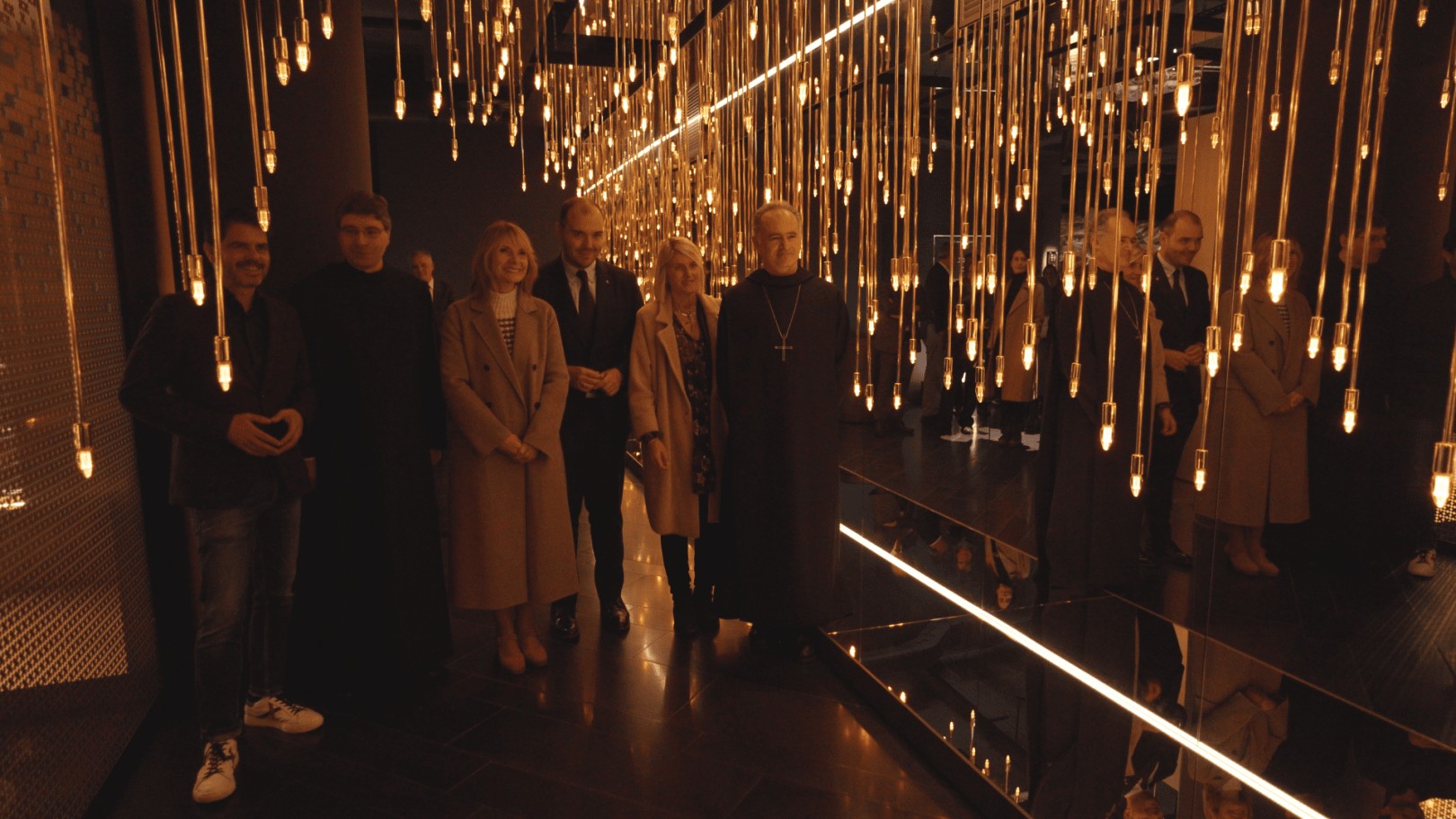 Com a punt culminant del recorregut, i mitjançant una pantalla reactiva en forma de pila baptismal, el visitant rep un missatge de comiat ple d’esperança i renaixement. Aquest missatge posa en marxa una seqüència d’efectes lumínics i assenyala el camí cap a la sortida.