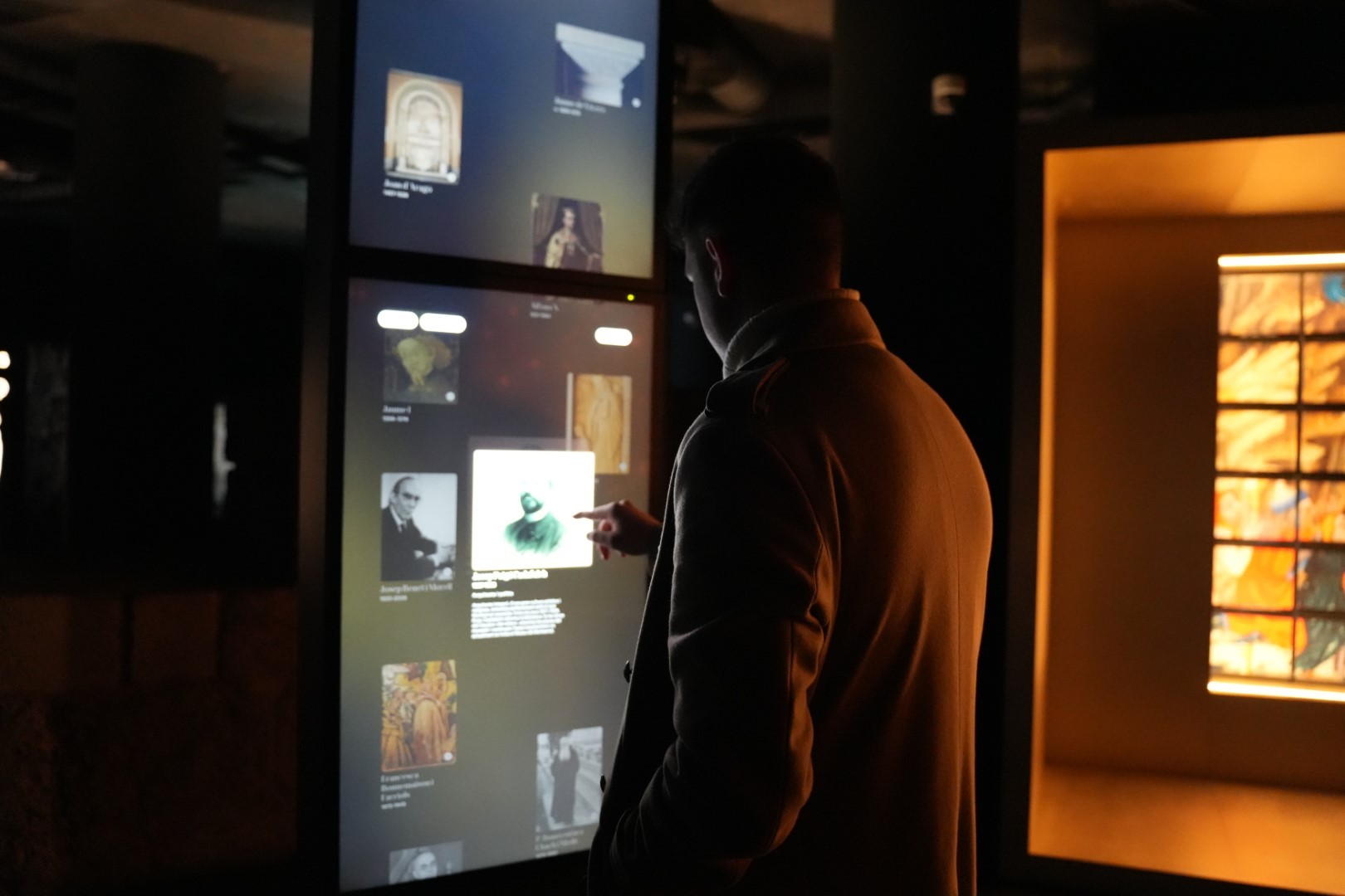 - Un interactiu –disposat en tres columnes tàctils– amb informació sobre els personatges i els pelegrins que han visitat el santuari al llarg del temps.