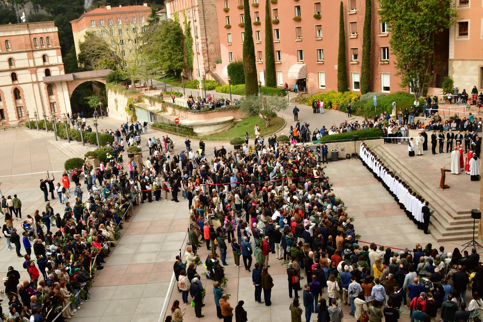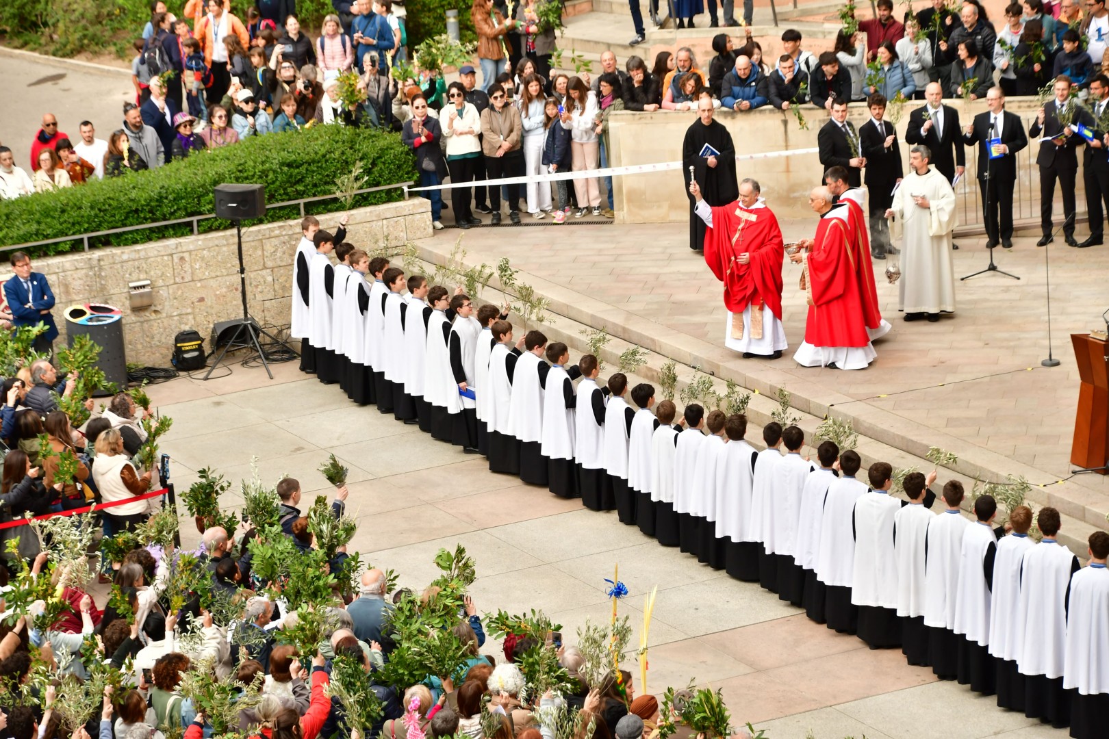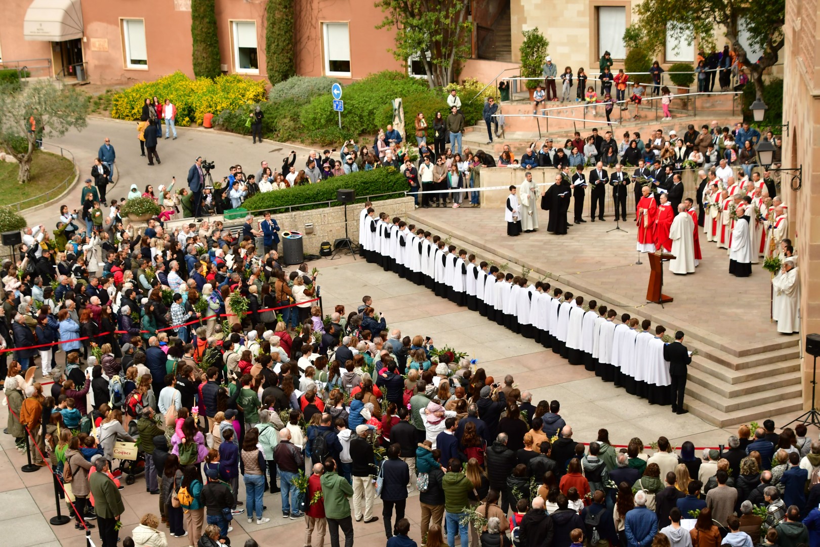 Diumenge 13 d’abril de 2025.- L’Abadia de Montserrat ha viscut un nou diumenge de Rams en què les places de l’abadia han acollit la benedicció dels rams i els palmons amb la presència de la comunitat benedictina i l’Escolania de Montserrat.