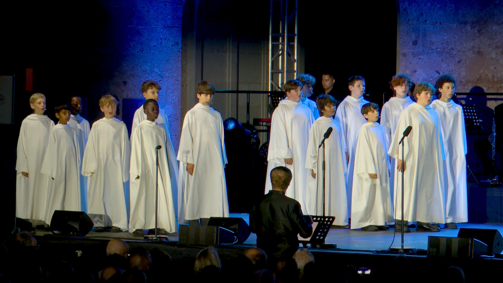 Diumenge 3 d’agost de 2025.- Aquest dissabte al vespre, la plaça de Santa Maria, a l’exterior del monestir de Montserrat, ha estat l’escenari del concert del grup vocal britànic Libera, en el marc de la seva gira internacional. Des de les 21 h fins a les 23 h, prop d’un miler i mig de persones han assistit a una actuació que ha destacat per la seva sobrietat i per la connexió amb el públic.