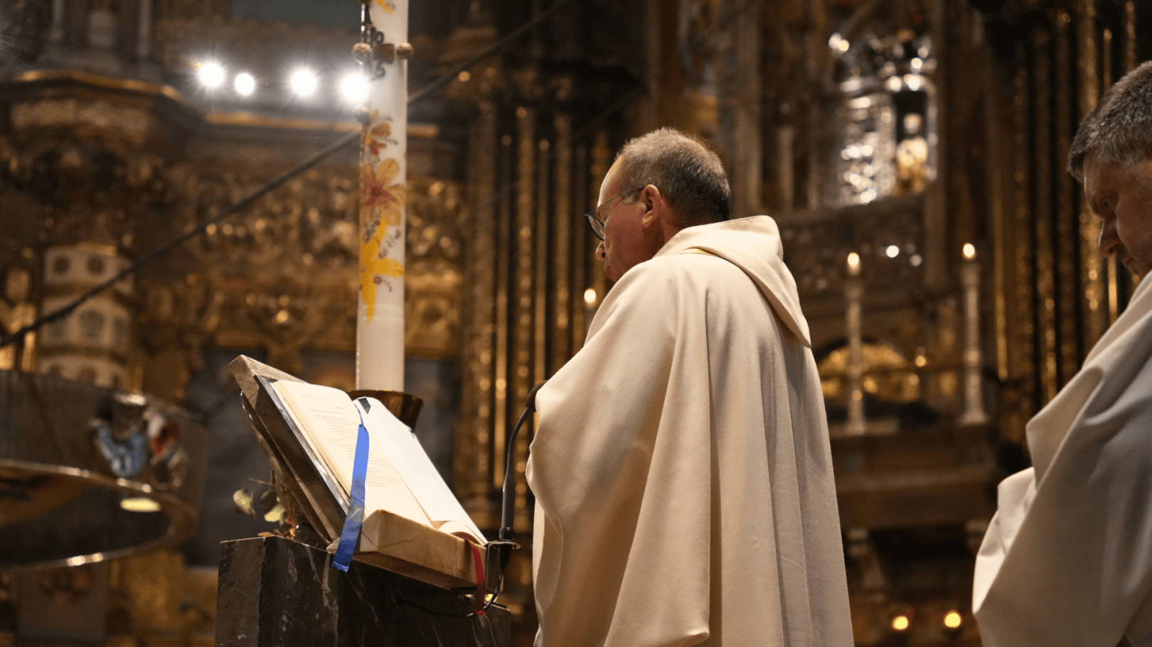 En total, vuitanta persones han pres part en la Missa Conventual, presidida pel P. Josep Miquel Bausset, monjo de Montserrat, amb la participació dels sacerdots Georges Vandenbeusch i Blaise Patier, de la diòcesi de Nanterre i dels Légionnaires du Christ, respectivament. En el marc de la visita, també han fet la lectura de l’Evangeli en francès.