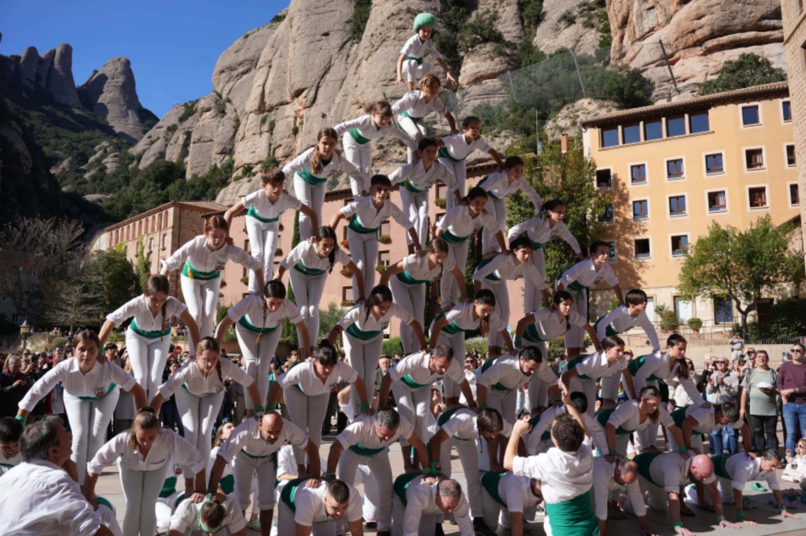 L'actuació ha començat just després de la missa conventual, moment en què una setantena de membres de la colla han aixecat diferents figures humanes sota els aplaudiments del públic present.